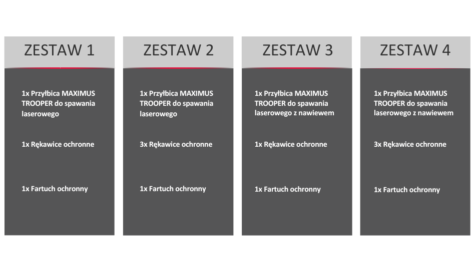 Praca z ręcznymi systemami spawania laserowego wymaga najwyższego poziomu ochrony osobistej. Dlatego przygotowaliśmy gotowe zestawy do spawania laserowego, które łączą kluczowe elementy ochrony operatora w jednym, spójnym pakiecie. Każdy zestaw został opracowany z myślą o realnych warunkach pracy przy spawaniu laserowym i zawiera certyfikowane środki ochrony indywidualnej, spełniające obowiązujące normy europejskie.